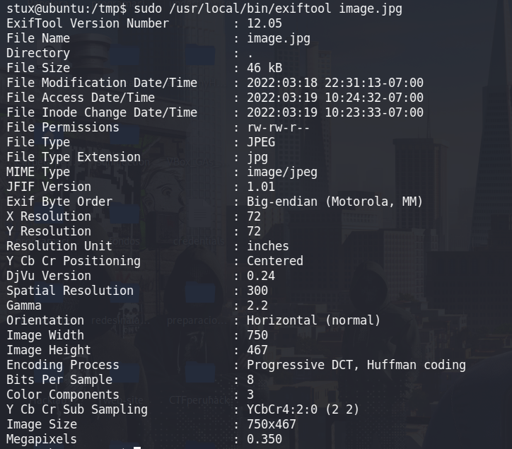 Ejecutamos exiftool ccon nuestra imagen, y deberia de haber cambiado los permisos de la /bin/bash