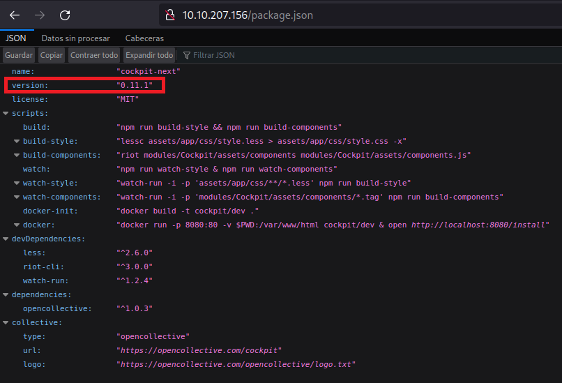 Enumerando un poco no topamos un directorio que nos muestra la versión